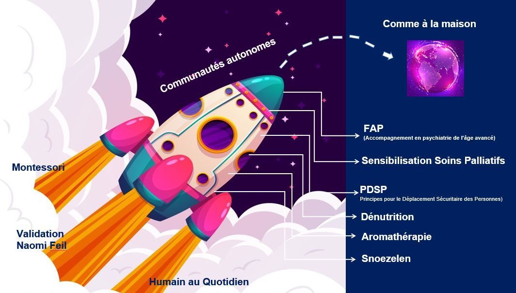 - Faire vivre la communauté de vie grâce aux résidants et à tous les secteurs en interdisciplinarité.